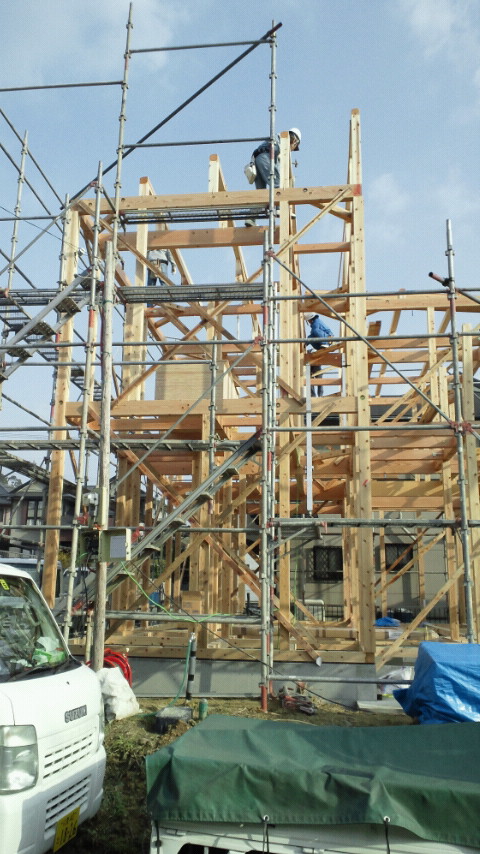 工事は着々と進んでおります(^^)v お施主様も今朝様子を見に来られてましたo(^∇^o)(o^∇^)o 嬉しそうな顔を見るとこちらもワクワクします! 余談ですが、2階の足場に登りましたがマジで高いです( ̄ロ ̄;) ビビりなもので屋根での作業はまだムリです。。。 早く克服せねば… |